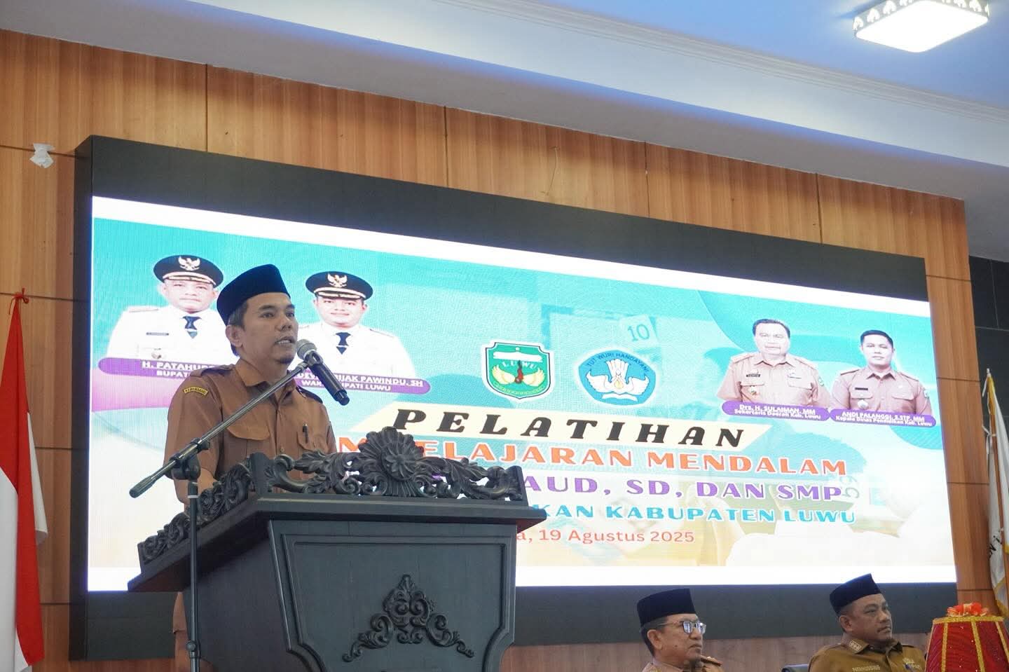 Belopa, 19 Agustus 2025 – Bupati Luwu, H. Patahudding, membuka secara resmi Pelatihan Pembelajaran Mendalam (Deep Learning) bagi guru dan kepala sekolah se-Kabupaten Luwu, yang yang diselenggarakan Dinas Pendidikan Kabupaten Luwu di Ruang Pola Andi Kambo, Kantor Bupati Luwu.